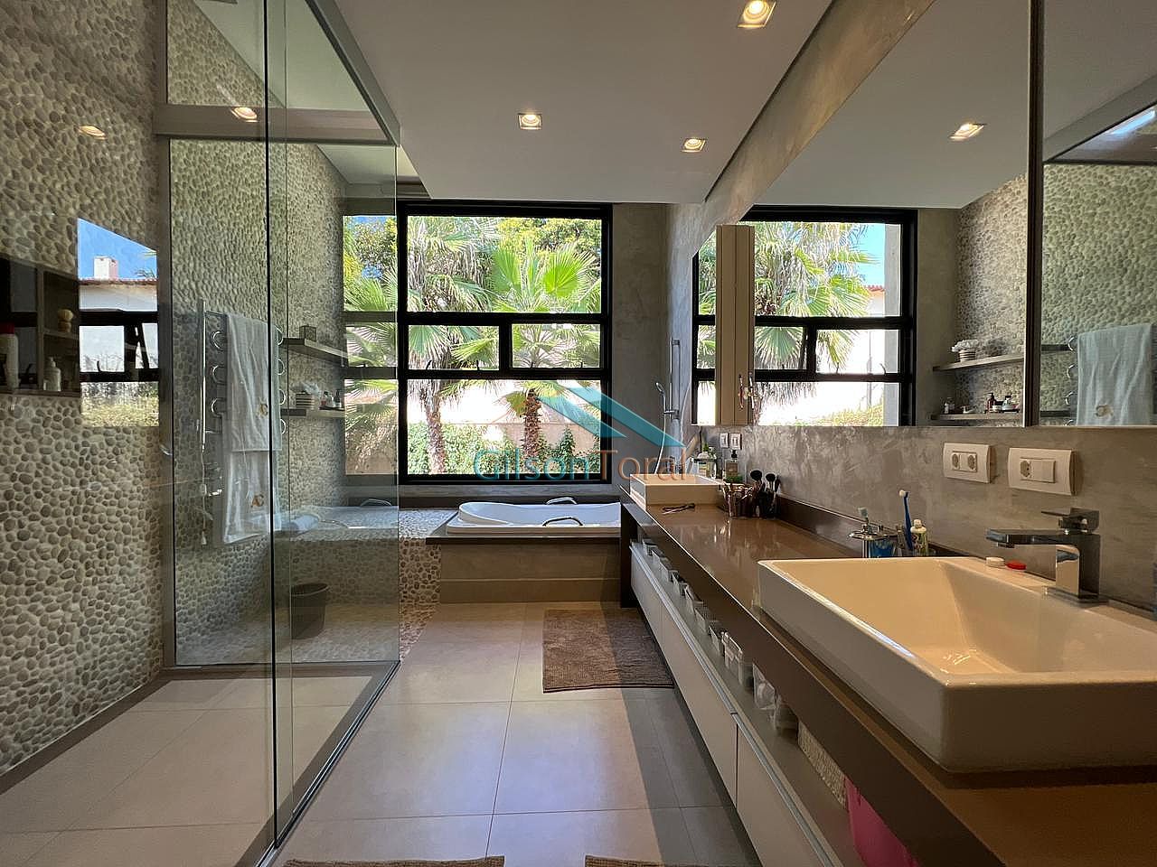 Excelente Casa em Alphaville, amplas suítes sendo máster com 2 cubas e hidromassagem, repleta de armários, ar-condicionado, sala íntima, living espaçoso com lareira, hall com pé direito duplo, escritório, home theater, aquecedor solar, cozinha planejada e integrada, espaço gourmet com churrasqueira, jacuzzi e lindo jardim com belíssimo paisagismo e árvores frutíferas, depósito, e garagem para 3 carros cobertos e 3 descobertos, com 580m² construídos em terreno de 600m².