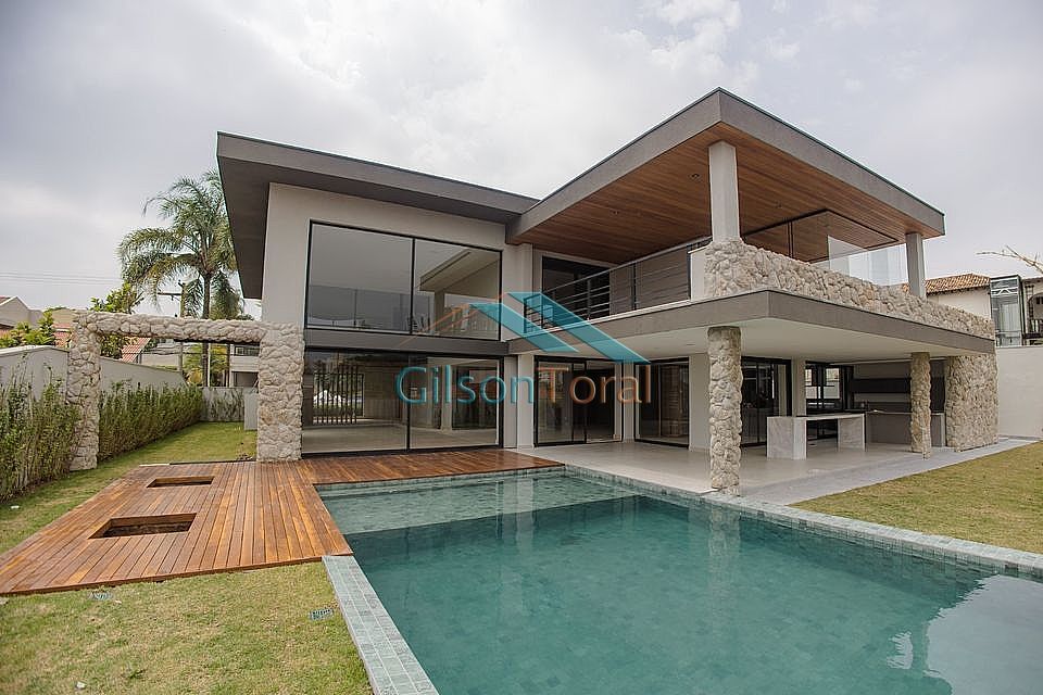 Casa em Alphaville, mansão alto padrão, 5 suítes sendo master com closet e banho Sr&Sra, SPA e varanda com lareira, elevador panorâmico, escritório, adega climatizada, infra de ar-condicionado em todos os ambientes para sistema split e dutado, área social toda em mármore Travertino, SPA, piscina com troca de calor e hidromassagem, sauna seca, área gourmet integrada, ponto de energia para carro elétrico, sistema para automação preparada, aspiração central, sistema de reaproveitamento de água, aquecimento solar e a gás, gerador, com 762m² construídos em terreno de 886m².