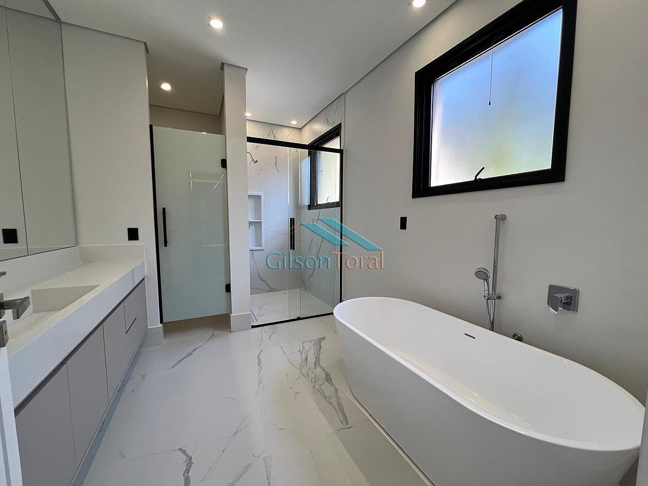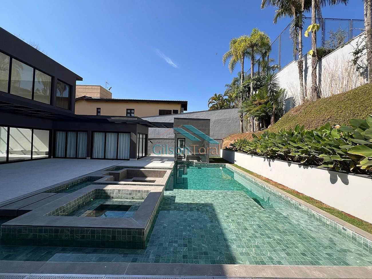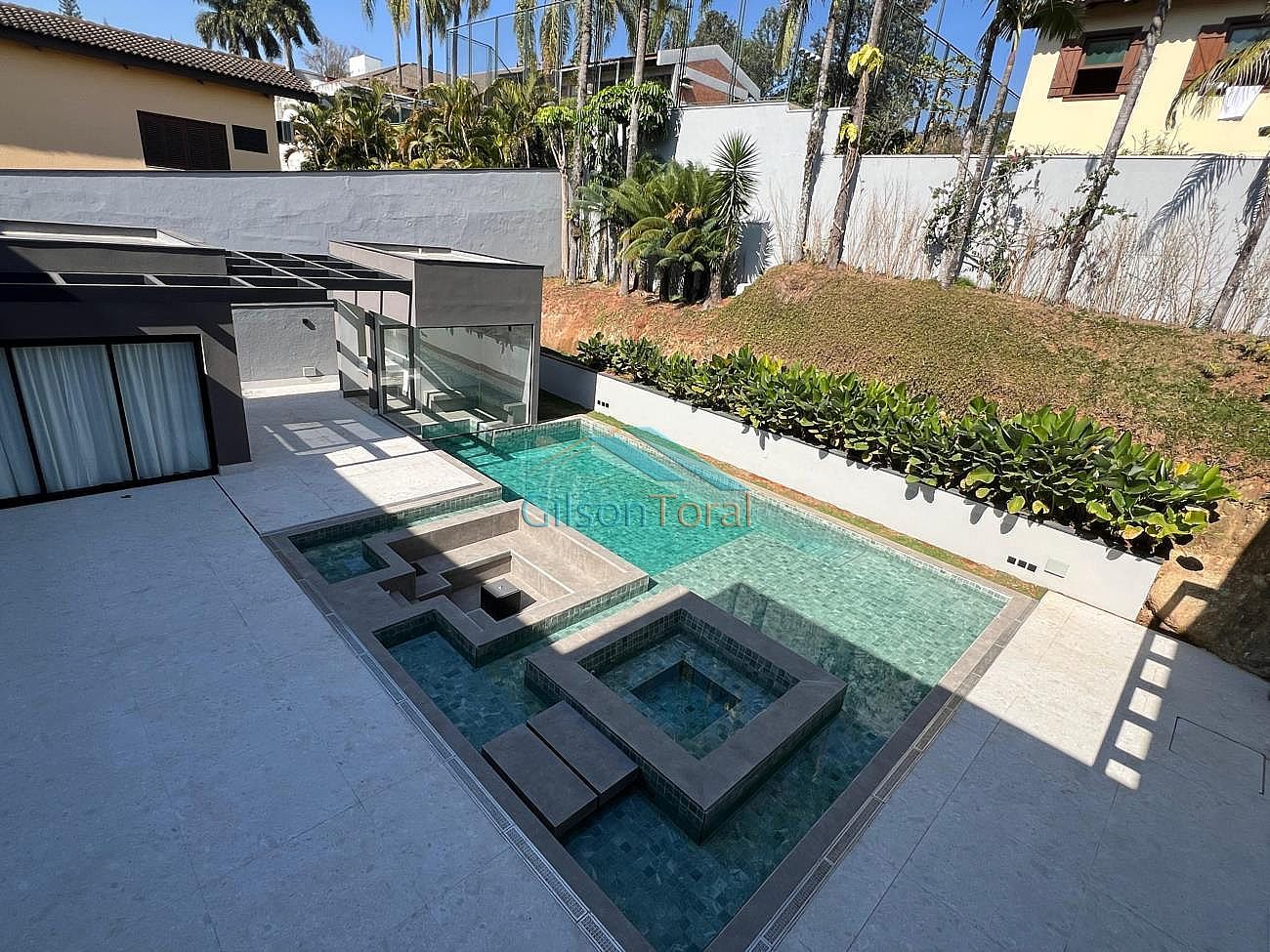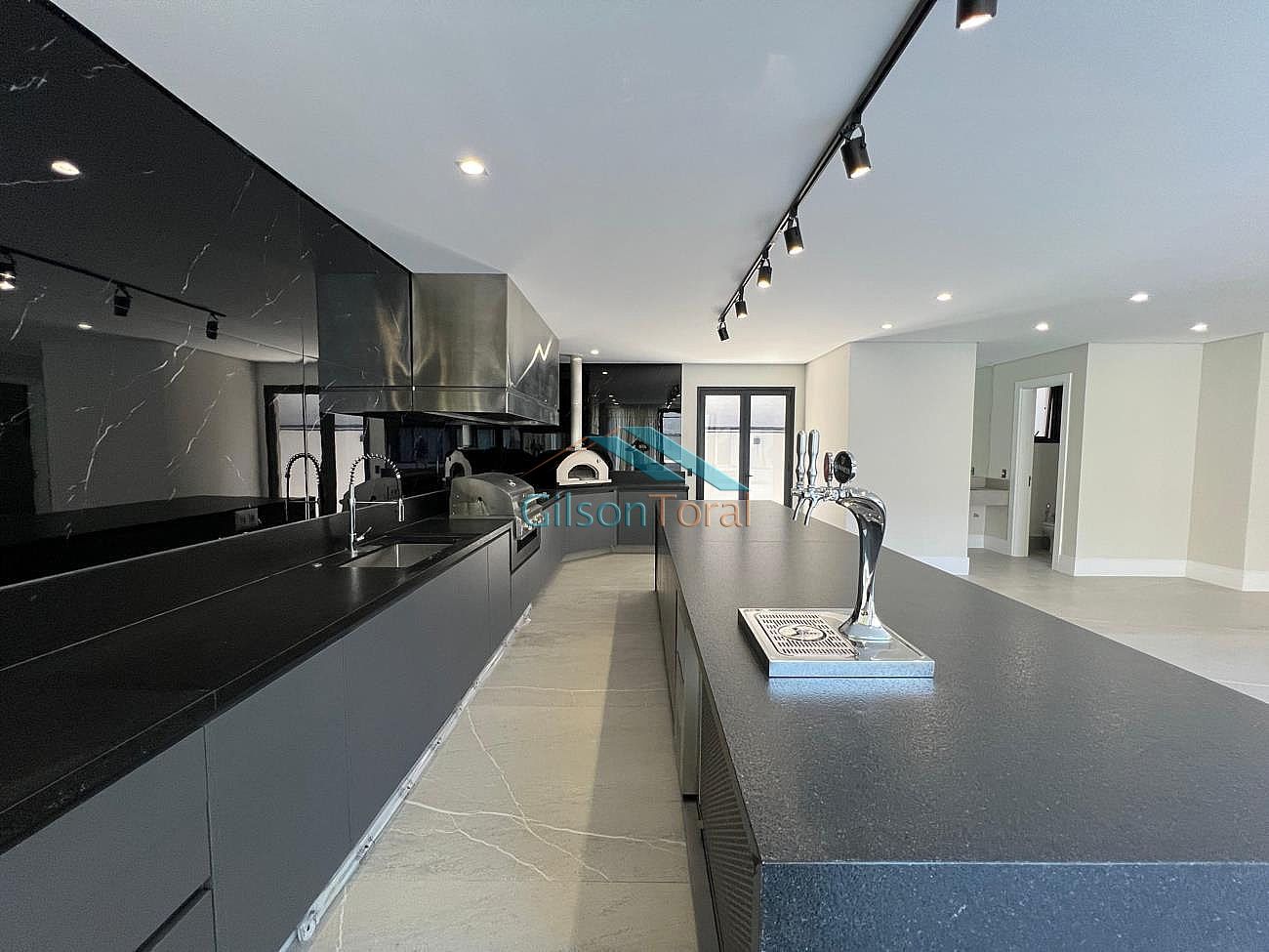 Conta com projeto luminotécnico com iluminação em LED e infraestrutura para energia fotovoltaica, ar-condicionado cassette na sala principal com capacidade de 96.000 BTUs para atender ambiente com pé direito de 7,5mts de altura e vãos livres de escada, infraestrutura para ar-condicionado em todos os ambientes da casa: quartos, inclusive closets sr. sra., salas, escritório e área gourmet, garagem no pavimento inferior para pelo menos 10 carros, sendo 2 vagas para carros elétricos, acabamentos com mármores, porcelanatos Decortiles de grandes dimensões (2,40x1,20), louças e metais Deca, paisagismo Terra Fofa com palmeiras imperiais preservadas, calçada e rampa de garagem Castelatto.