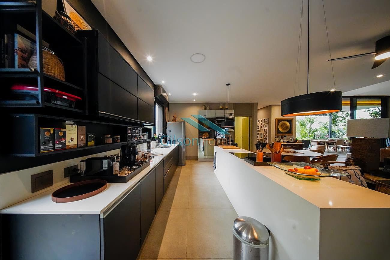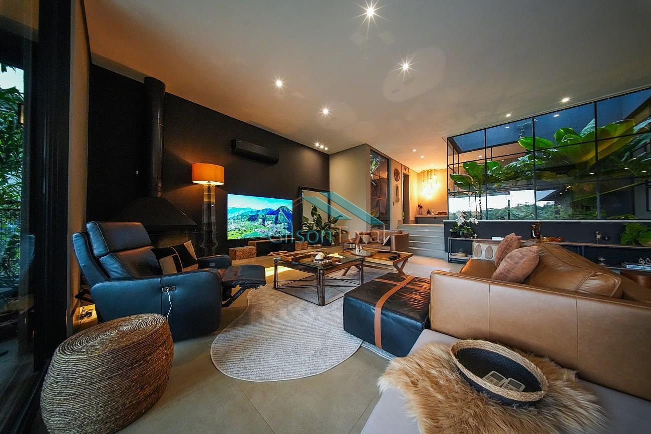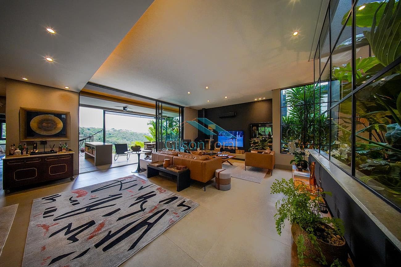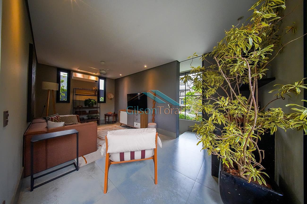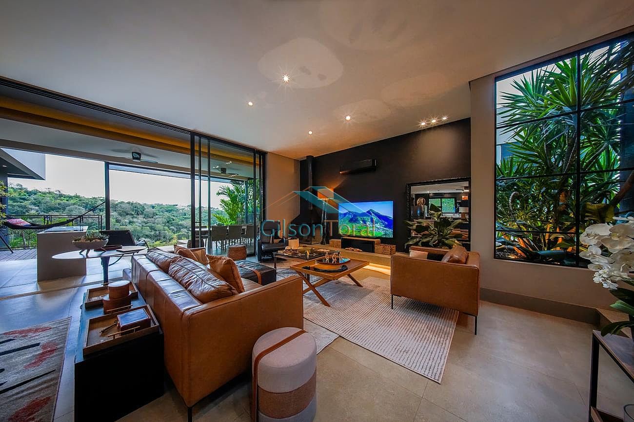Aconchegante Casa em Alphaville, contemporânea e integrada a natureza, com 480m² de construção em 546m² de terreno, ambientes integrados, 4 suítes sendo 1 no térreo, sala com lareira, lavabo com jardim de inverno, cozinha gourmet com vista para o verde e uma cozinha de apoio, SPA aquecido, área gourmet e piscina com vista definitiva para a mata, espaço multi uso amplo que pode ser uma academia, atelier, estúdio etc.