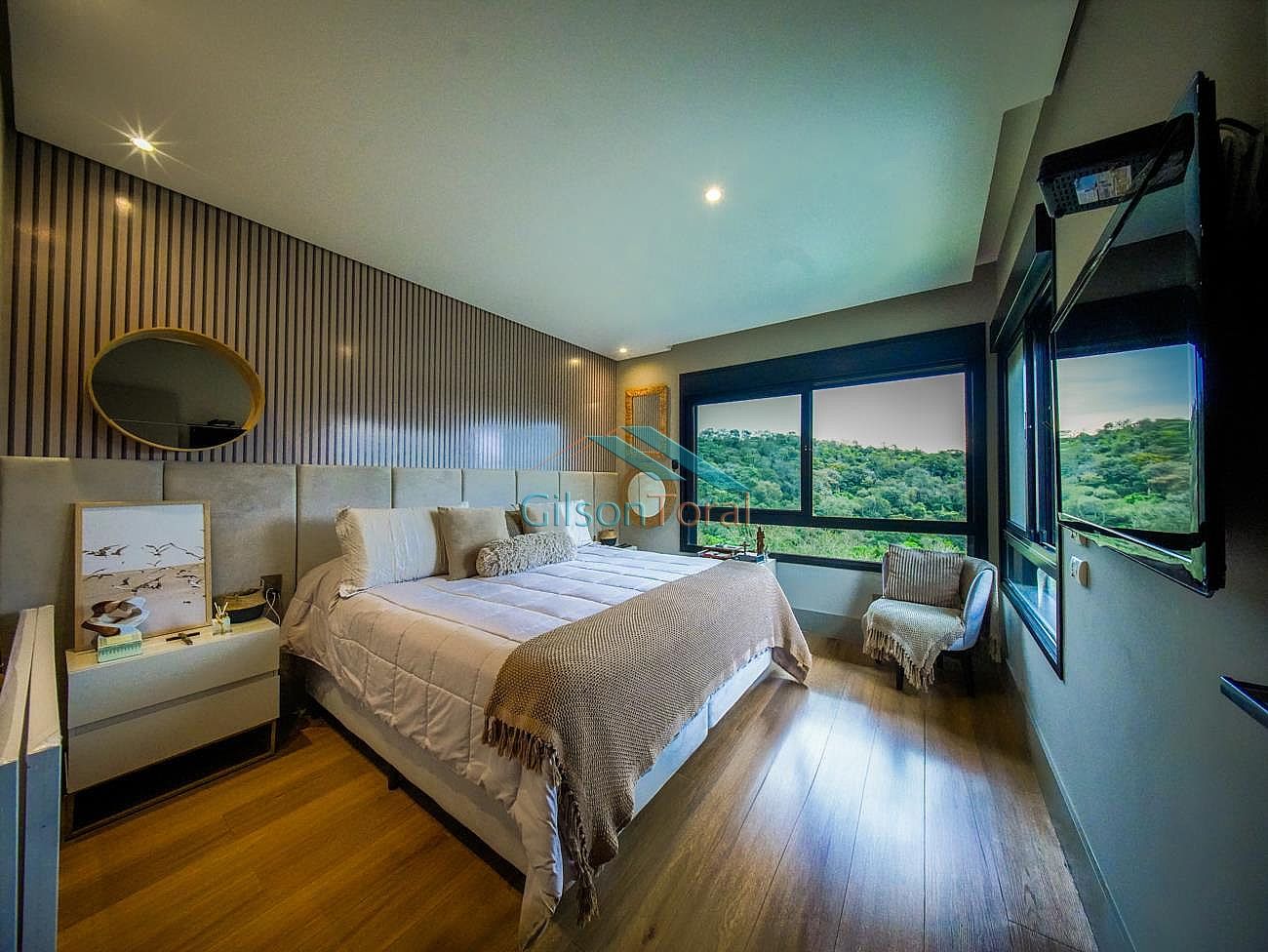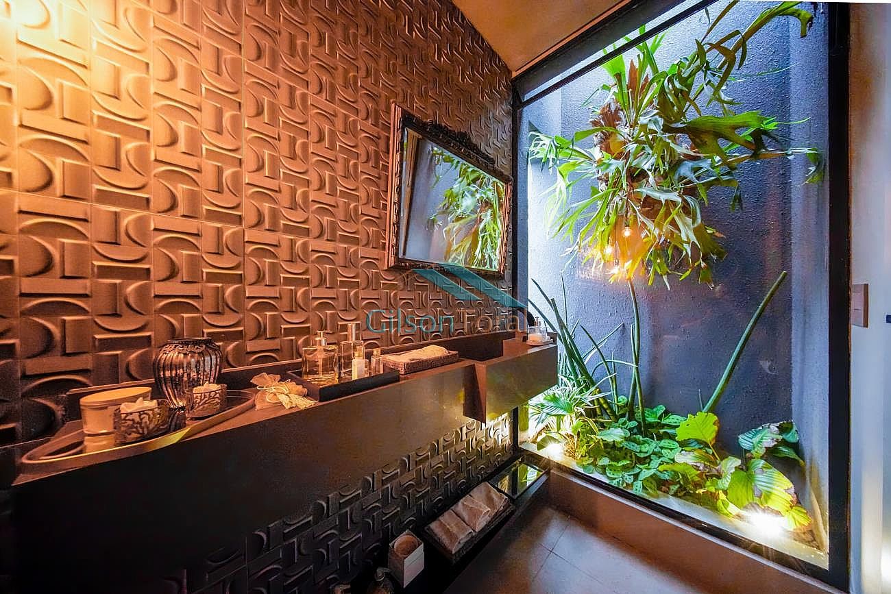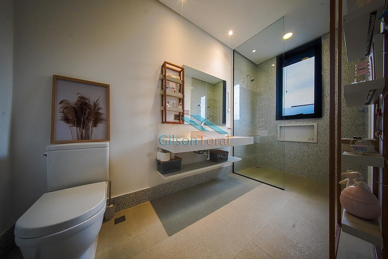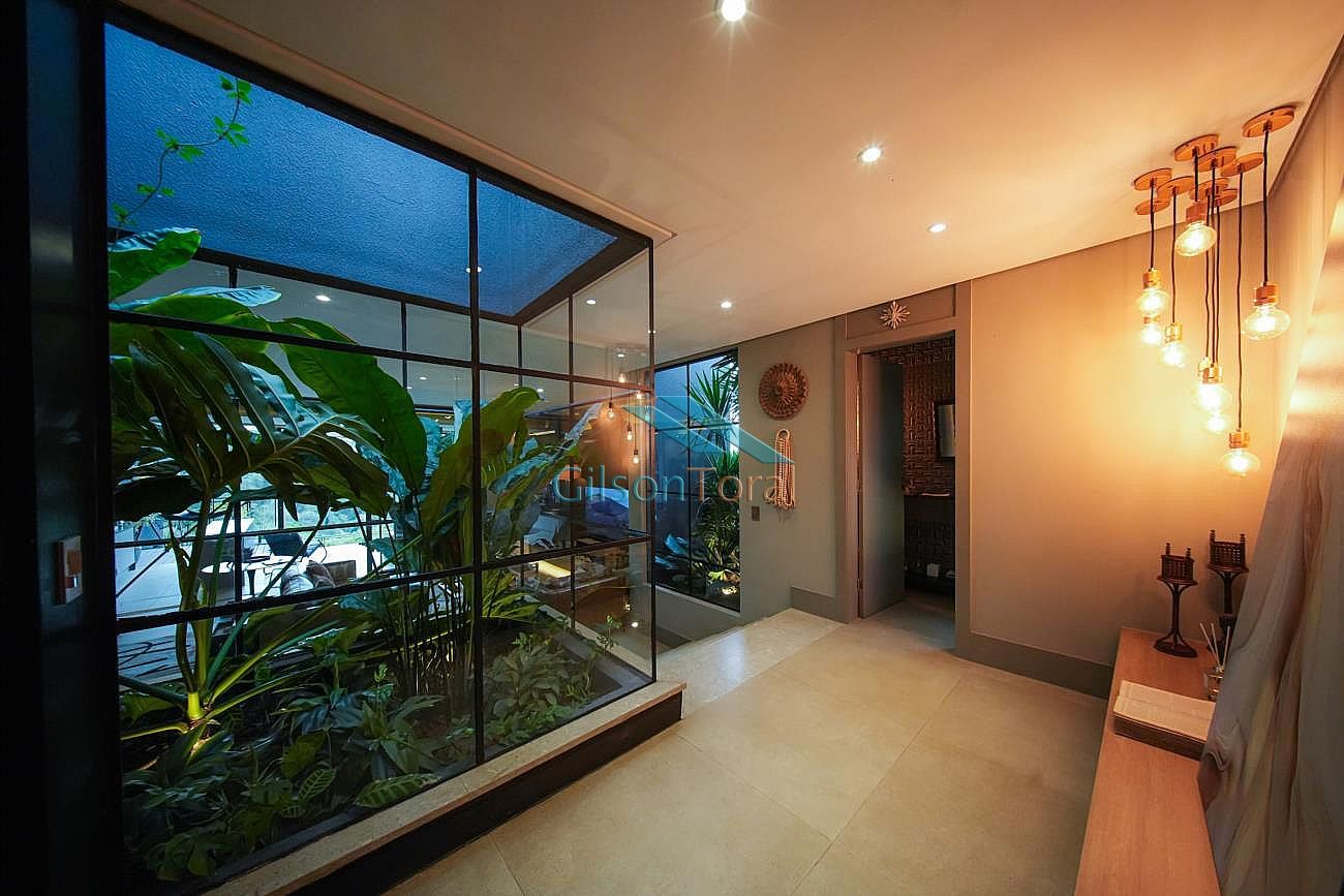 Aconchegante Casa em Alphaville, contemporânea e integrada a natureza, com 480m² de construção em 546m² de terreno, ambientes integrados, 4 suítes sendo 1 no térreo, sala com lareira, lavabo com jardim de inverno, cozinha gourmet com vista para o verde e uma cozinha de apoio, SPA aquecido, área gourmet e piscina com vista definitiva para a mata, espaço multi uso amplo que pode ser uma academia, atelier, estúdio etc.