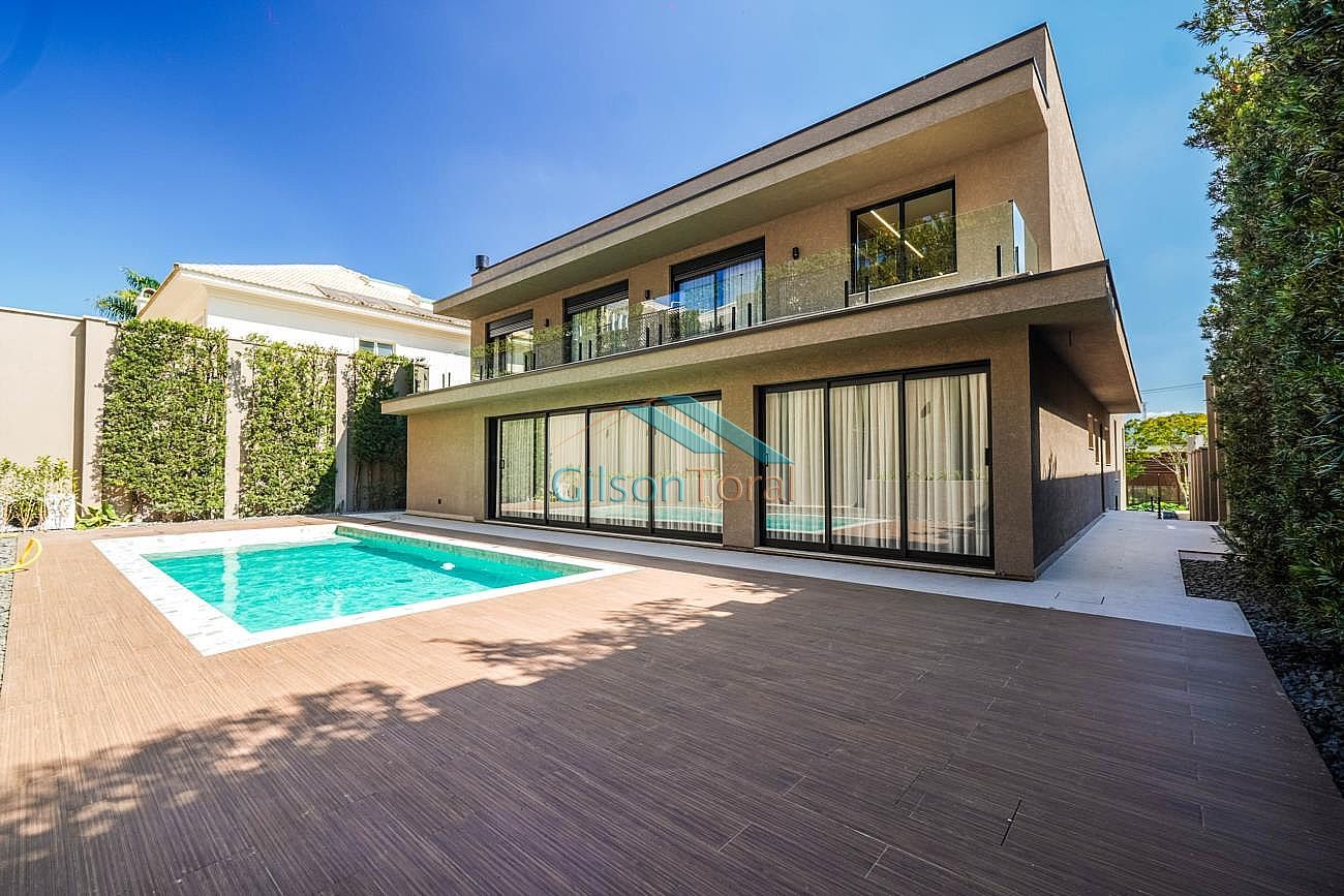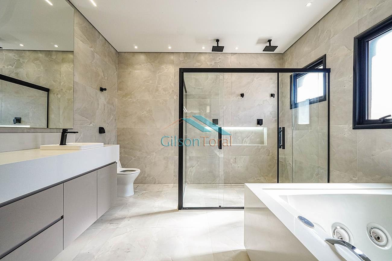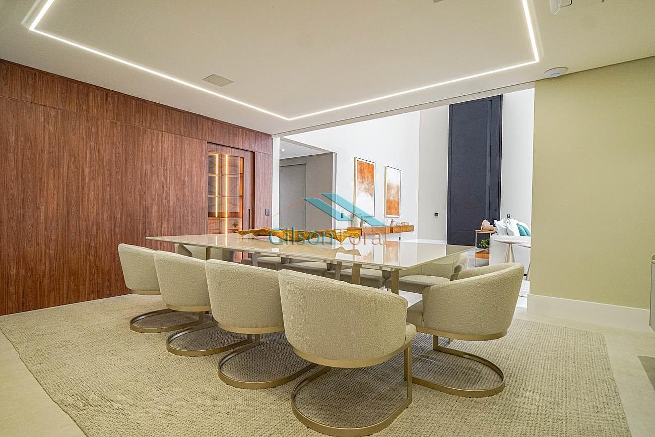 Linda Casa em Tamboré com 722m² de construção em 788m² de terreno, 4 suítes sendo master com closet e hidromassagem, roupeiro, elevador Bass Tech, amplo living com lareira, home theater, escritório, adega climatizada Inside Decor com capacidade para 170 rótulos, cozinha com ilha, cristaleira, espaço gourmet com churrasqueira integrado, piscina com aquecimento