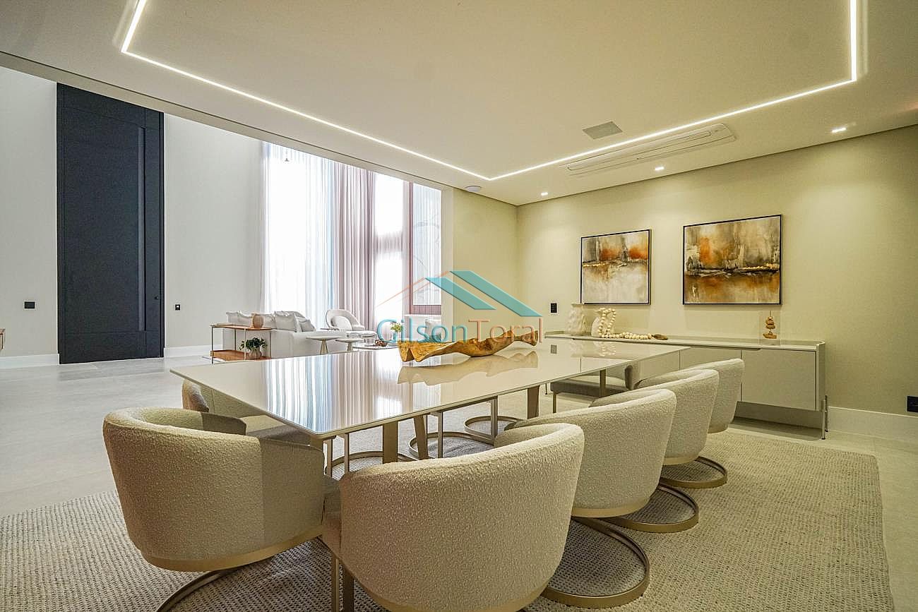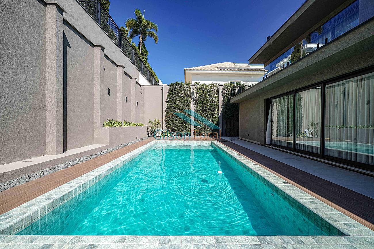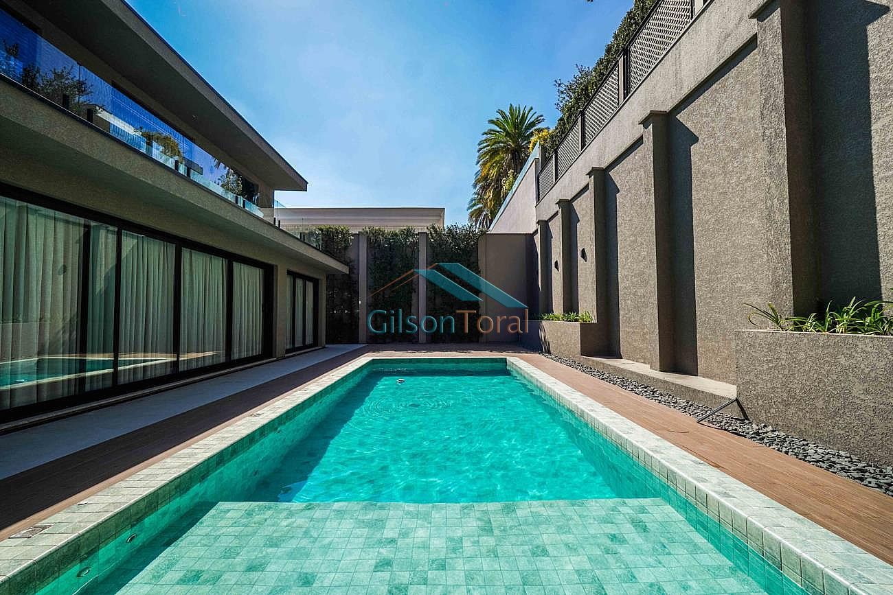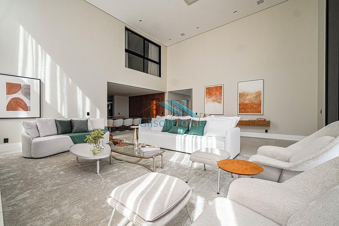 Linda Casa em Tamboré com 722m² de construção em 788m² de terreno, 4 suítes sendo master com closet e hidromassagem, roupeiro, elevador Bass Tech, amplo living com lareira, home theater, escritório, adega climatizada Inside Decor com capacidade para 170 rótulos, cozinha com ilha, cristaleira, espaço gourmet com churrasqueira integrado, piscina com aquecimento